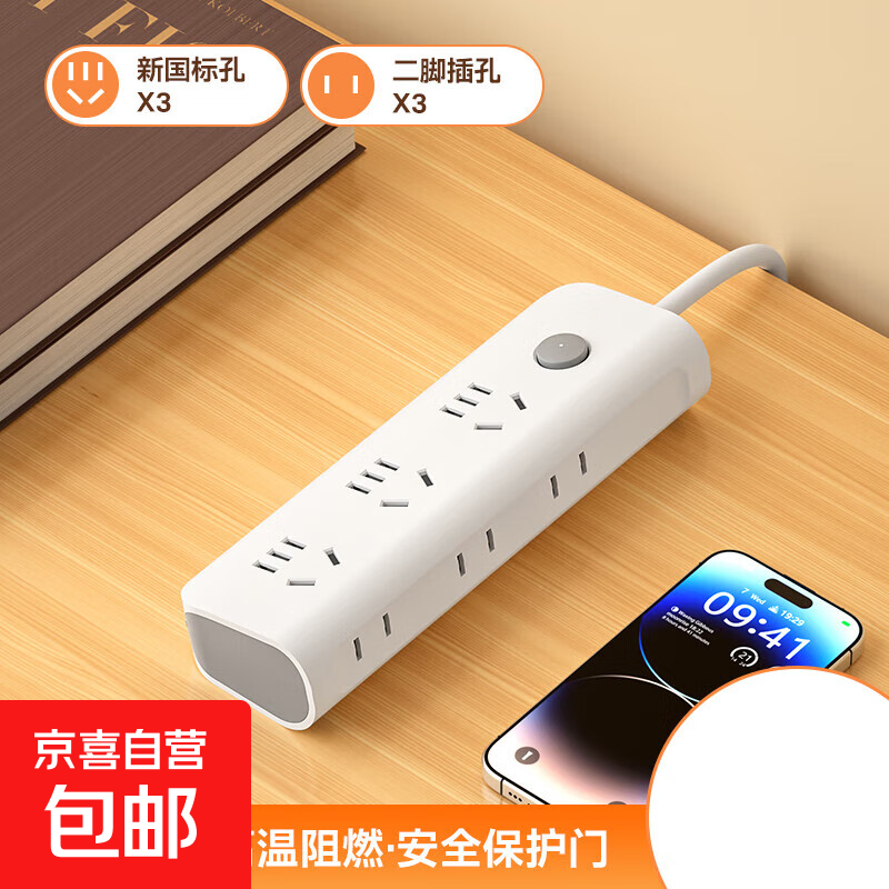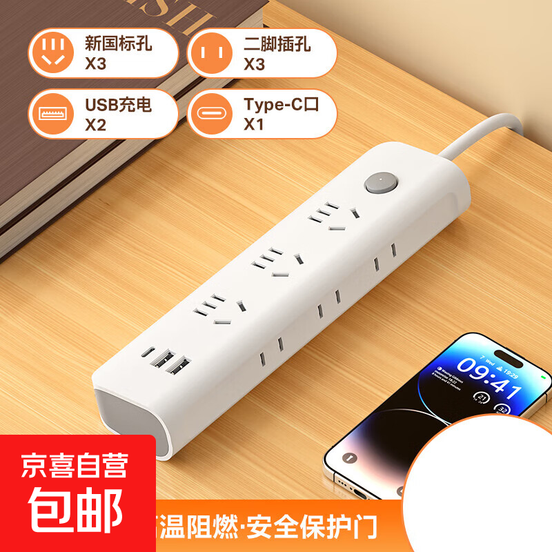【京东物流】纯铜插座家用多功能USB快充插排插线板学生宿舍排插延长线插线板带线多功能接线板 3插位【总控开关】 全长2.8米