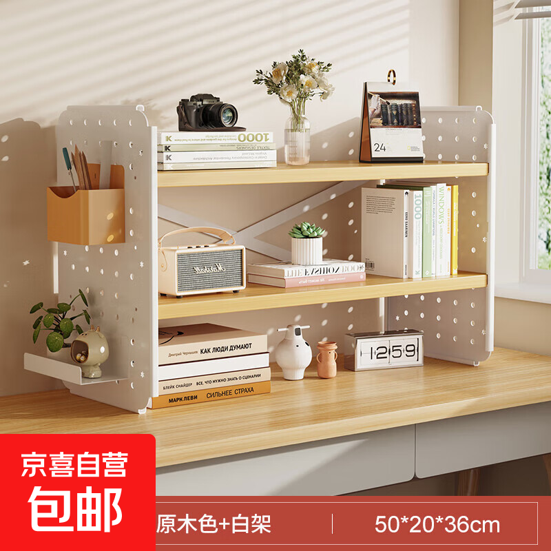 桌面置物架桌上简易书架书桌收纳家用小型储物办公室文件放置架 【送加固X架双层送一盒一板】原木色50*20*36