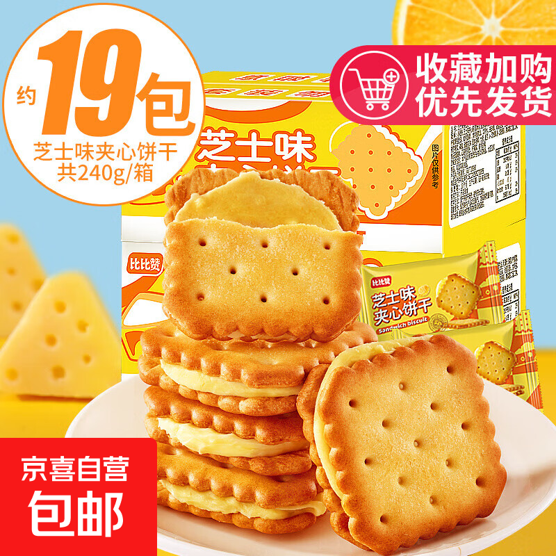比比赞手撕面包糕点饼干组合整箱早餐点心小吃 【约19包】芝士味夹心饼干240g/箱