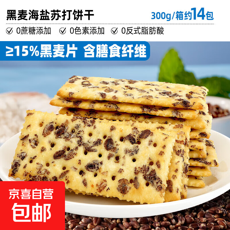 比比赞手撕面包糕点饼干组合整箱早餐点心小吃 黑麦海盐苏打饼干300g