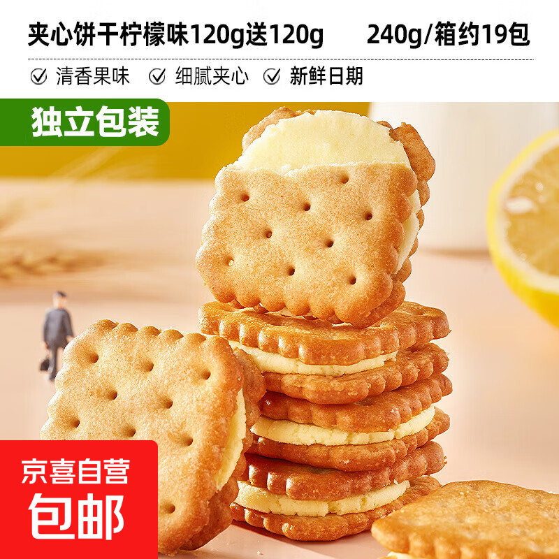 比比赞手撕面包糕点饼干组合整箱早餐点心小吃 【约19包】柠檬味夹心饼干240g/箱