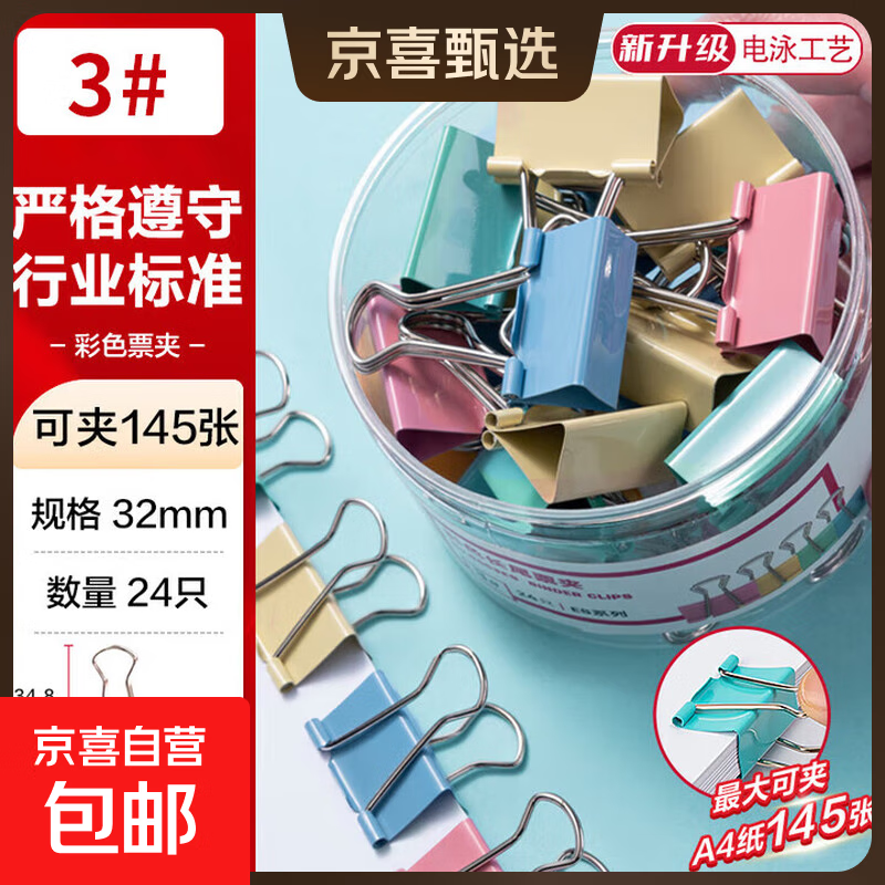 彩色长尾夹子办公用品票夹文件雁尾蝴蝶鱼尾票据凤尾文具固定书本纸张试卷资料大小号多功能收纳 32mm/共24个【彩色1桶装】