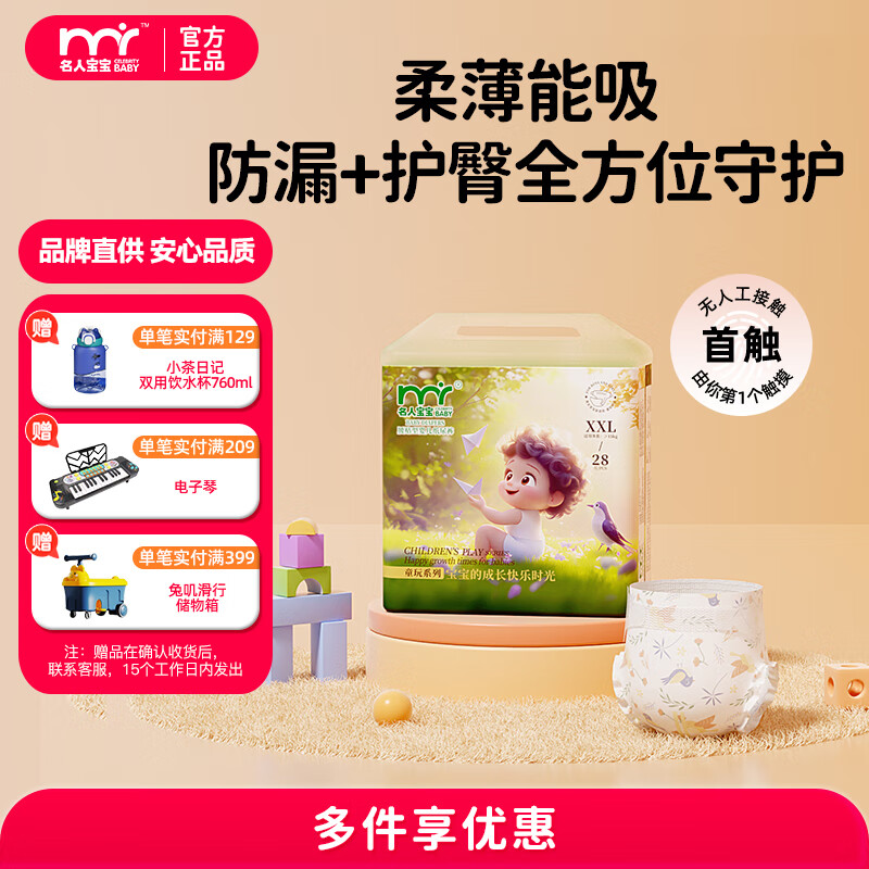 名人宝宝童玩系列超薄透气尿不湿柔软纸尿裤婴儿尿裤瞬吸干爽花苞裤试用 纸尿裤XXL码28片(>17kg)