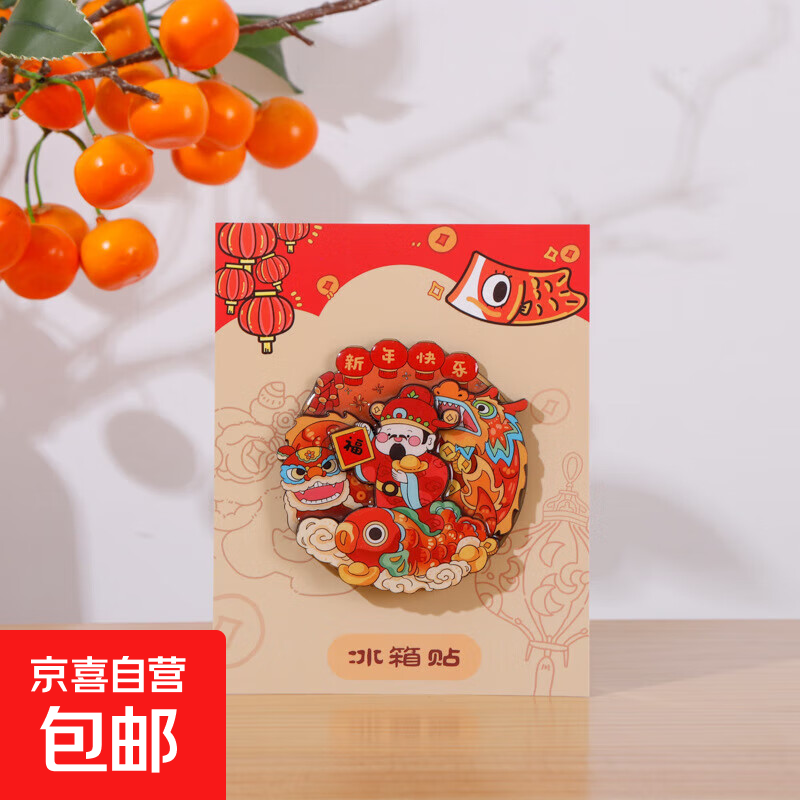2025新款民俗节日系列冰箱贴春节中秋端午圣诞冰箱贴磁贴 春节-新年快乐 1个