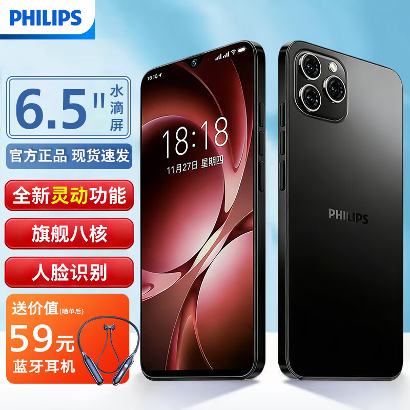 飞利浦S6105全新八核智能手机超薄百元学生价大屏旗舰手机便宜长续航老人老年备用机电竞游戏 星耀黑