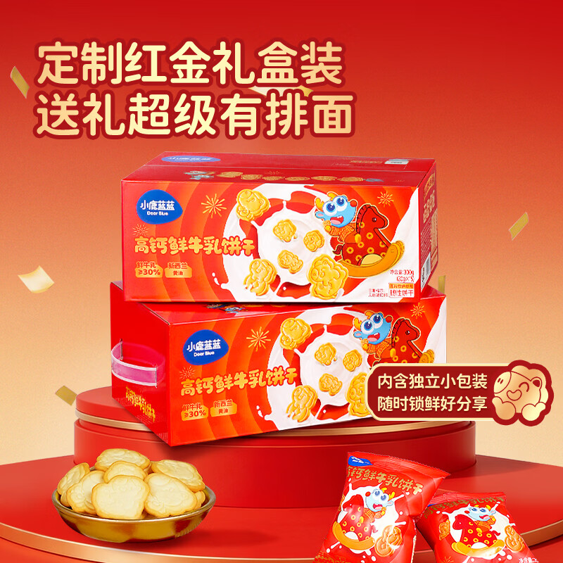 小鹿蓝蓝鲜牛乳饼干儿童零食牛奶饼干宝宝辅食小饼干营养早餐休闲食品 鲜牛乳饼干2箱【马年限定】600g