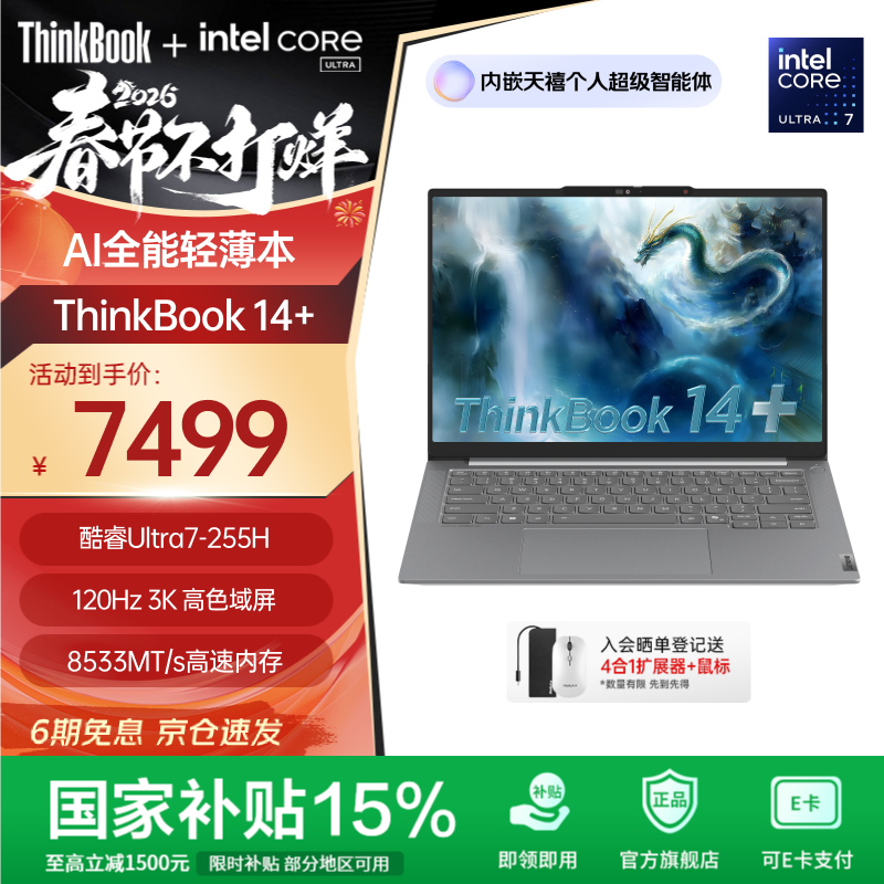 ThinkPad【国家补贴15%】联想ThinkBook 14+ 2025 AI轻薄本 英特尔酷睿处理器 14.5英寸商务办公笔记本电脑 全新2代Ultra7 32G 1T