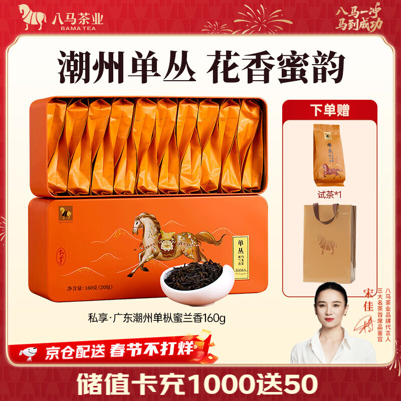 八马茶业 金骏眉/大红袍/肉桂/单枞/铁观音/白茶/茉莉花茶 茶叶自己喝 【潮州单丛蜜兰香】160g