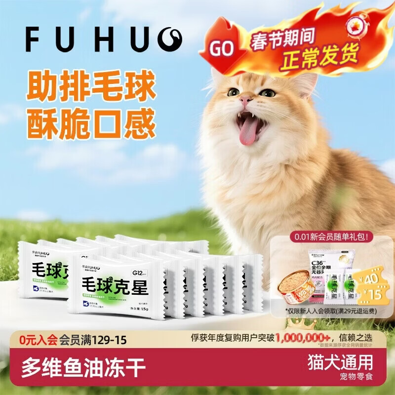 俘获G12猫咪毛球克星猫零食云草片杉化去助排毛球维生素鱼油冻干棒 【酥脆口感】12包散装(24颗)