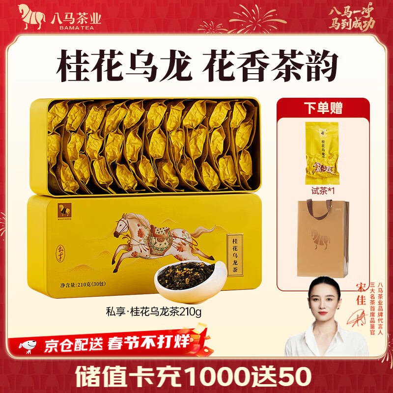 八马茶业 金骏眉/大红袍/肉桂/单枞/铁观音/白茶/茉莉花茶 茶叶自己喝 【桂花乌龙茶】210g