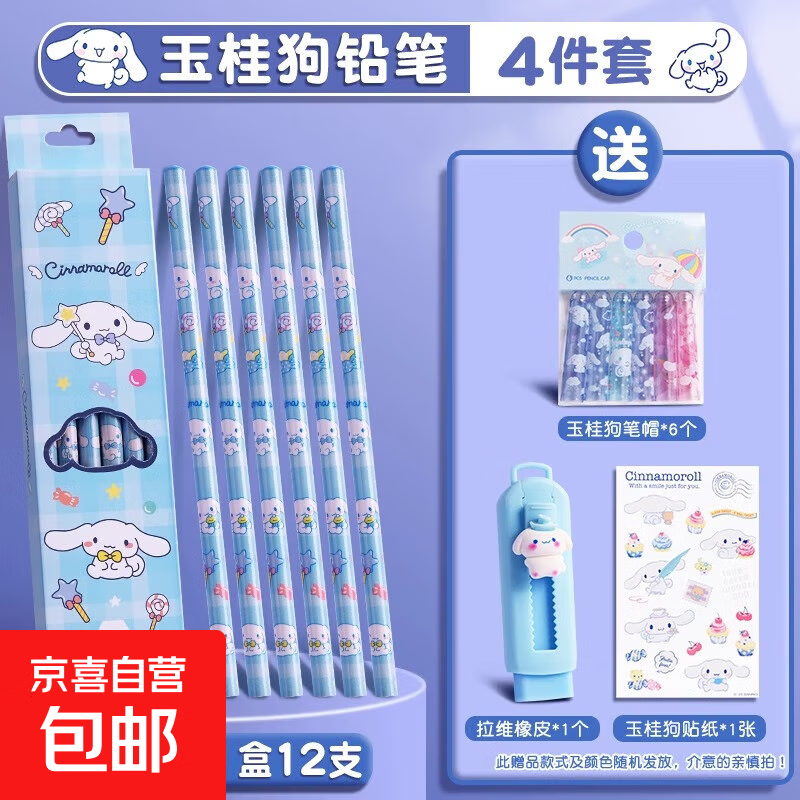 库洛米文具套装女生铅笔套装小学生一年级学习文具用品儿童女孩儿童奖励套装幼儿园文具套装礼盒 玉桂狗-1盒/共12支+橡皮擦+笔帽+贴纸