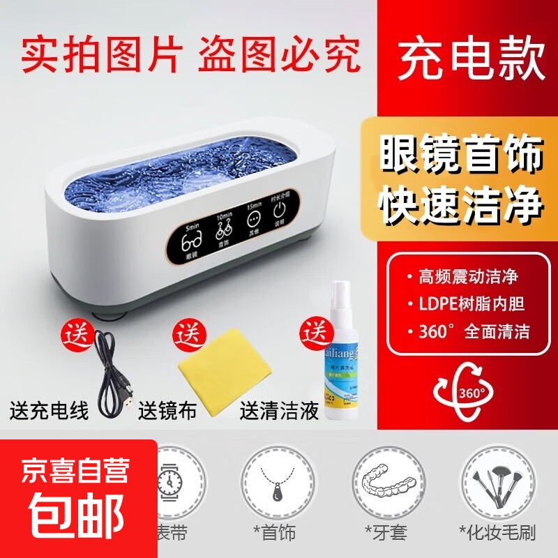 多功能眼镜清洗机家用充电式手表牙刷假牙套首饰清洗器洗眼镜机 600#充电(送充电线镜布清洗剂)