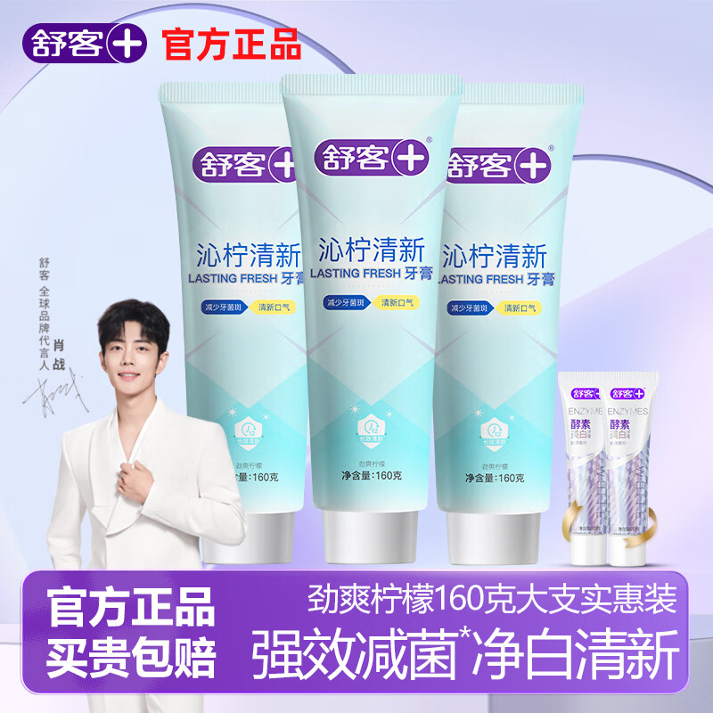 舒客专研沁柠清新强效减菌持久清凉牙膏男女家庭实惠装官方正品 沁柠清新 160g*3支 +小样*2