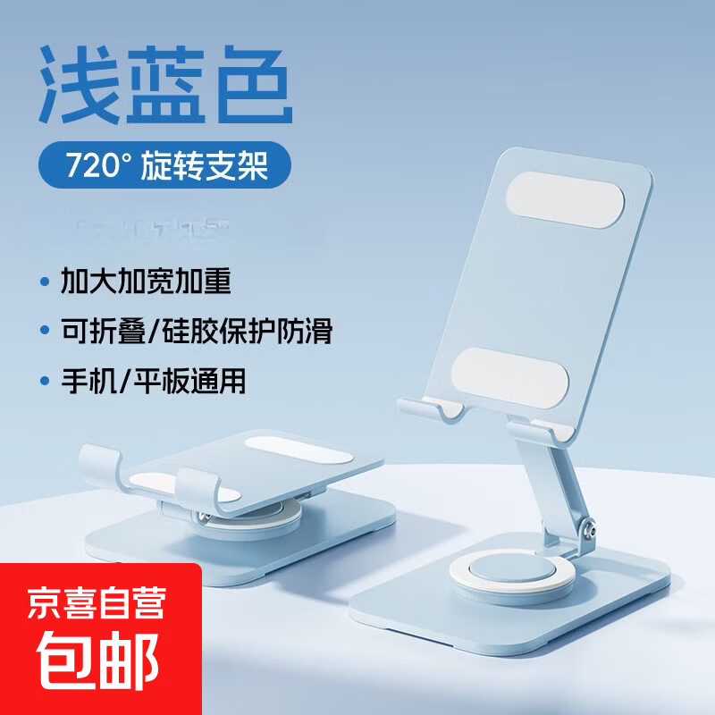 碳钢金属底座手机支架IPAD平板支架懒人桌面直播拍视频旋转高度可调节升降小巧便携支撑架可折叠 【全金属升级】方型底座加重加大-月白蓝