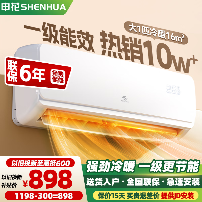 申花空调补贴 新一级能效 大1.5匹冷暖节能空调挂机 家用 壁挂式 大1P省电变频 以旧换新 快速冷暖 大1匹 一级能效 冷暖 无安装 送货入户