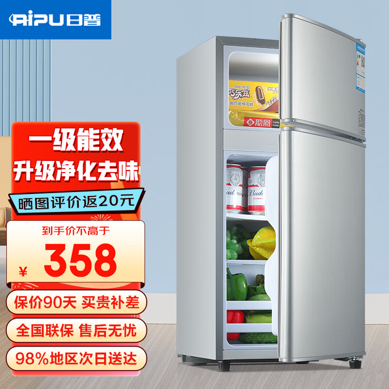 日普(RIPU)小冰箱迷你小型双门家用一级能效宿舍出租房办公室节能省电冷藏冷冻电冰箱 【升级净化去味】76升银色【小巧不占地】