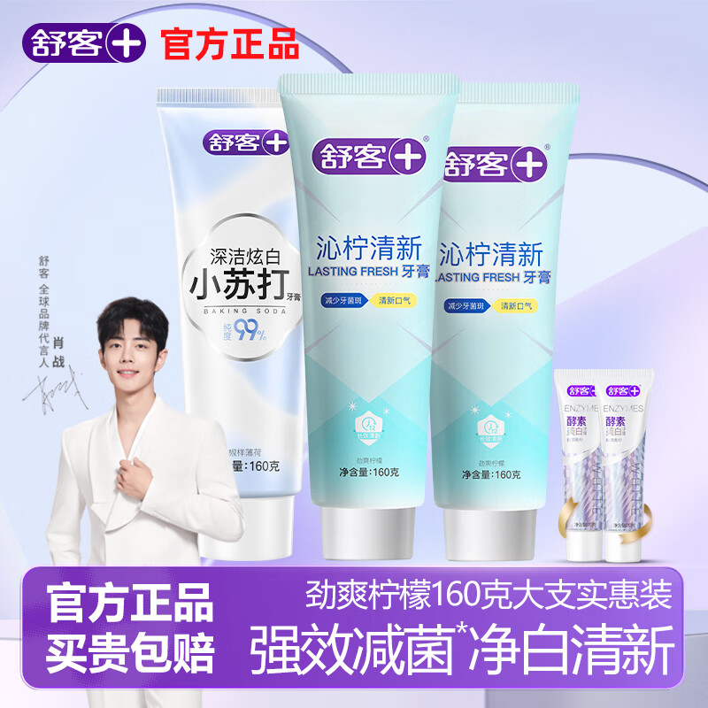 舒客专研沁柠清新强效减菌持久清凉牙膏男女家庭实惠装官方正品 小苏打160g*1支+沁柠 160g*2支