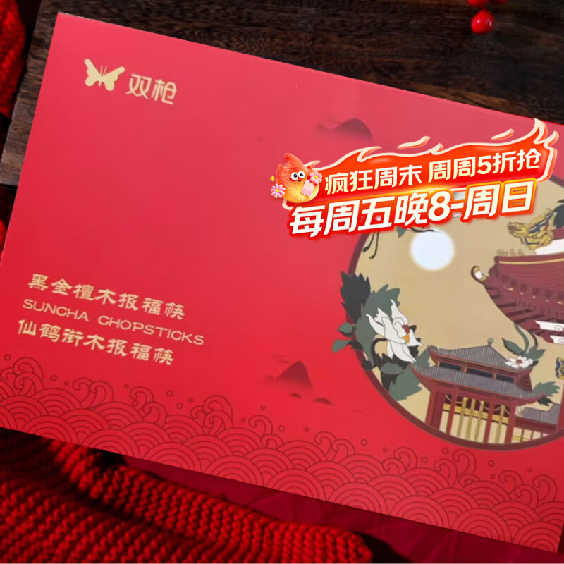 双枪福禄筷子家用新款非洲花梨木筷子豪华过年送礼礼盒礼物走亲戚高档 仙鹤报福礼盒抗菌黑金檀木筷20双