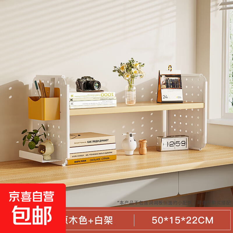 桌面置物架桌上简易书架书桌收纳家用小型储物办公室文件放置架 【单层】原木色+白架50*15*22CM