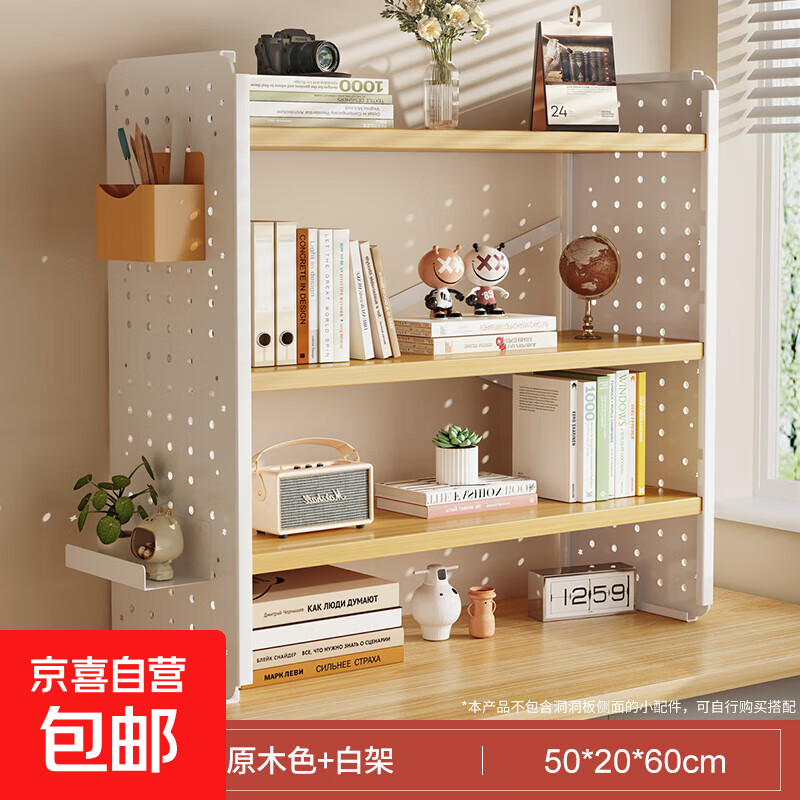 桌面置物架桌上简易书架书桌收纳家用小型储物办公室文件放置架 【送加固X架三层】原木色+白架50*20*60CM