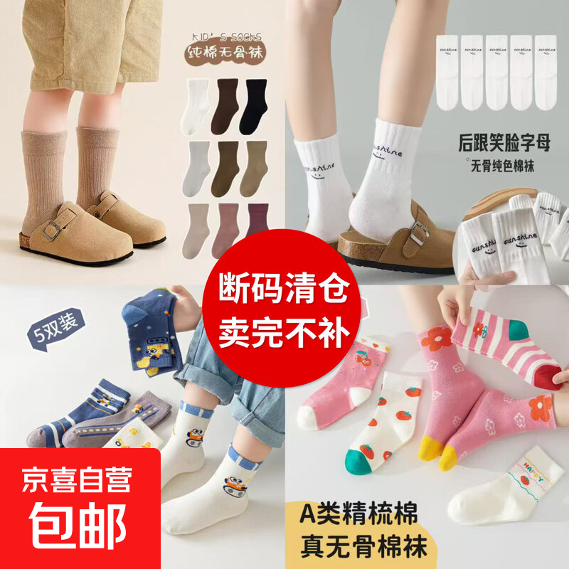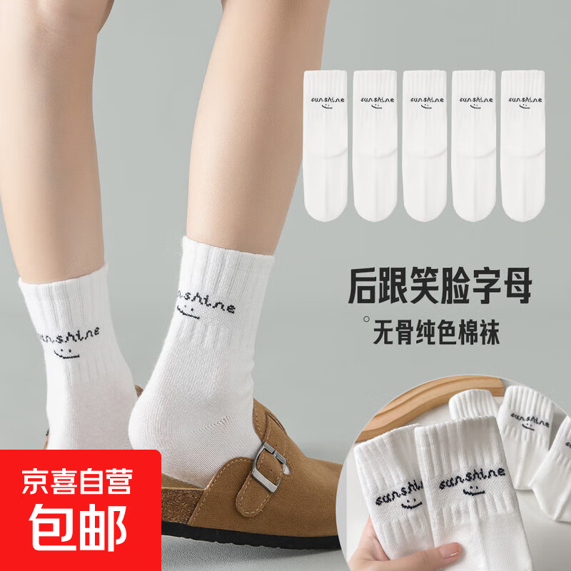 妙优童儿童棉袜舒适简约无骨男孩女孩百搭运动袜 白色字母 无骨五双装 4-6岁 M码 建议脚长13-16CM