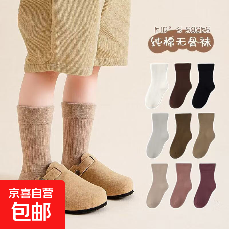 妙优童儿童棉袜舒适简约无骨男孩女孩百搭运动袜 可可棕色 无骨五双装 6-7岁 L码 建议脚长16-19CM