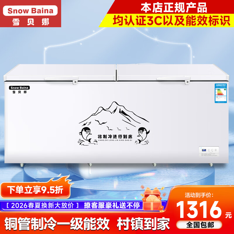 雪贝娜冰柜商用大容量全冷冻家用双温卧式冷柜展示柜 898单温【铜管一级能效】长1.96米