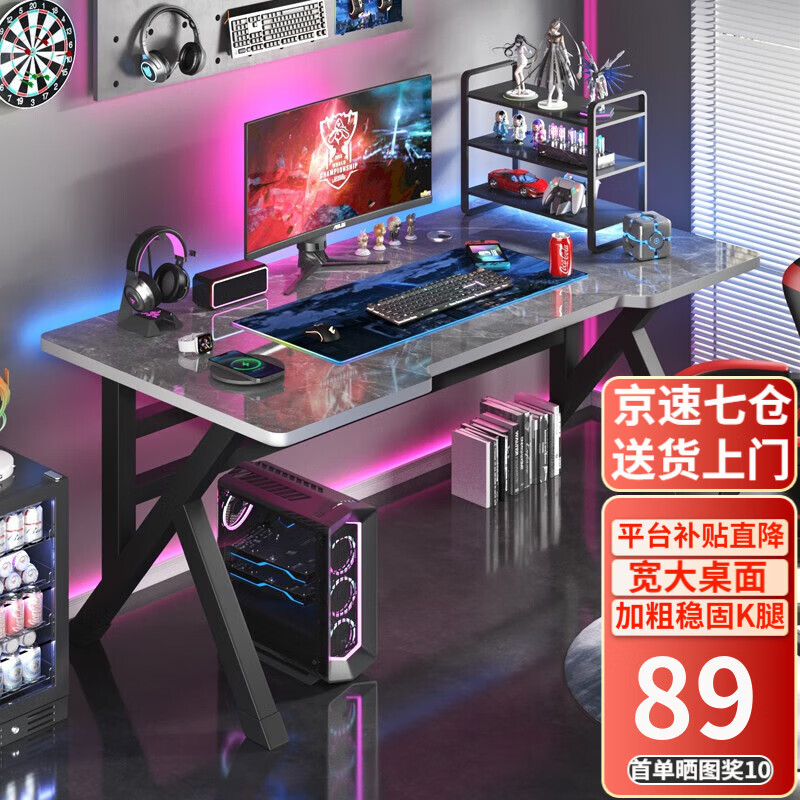 奥伦福特 电脑桌台式家用电竞游戏桌办公书桌简约书房写字桌子 欧式岩板灰-单桌80*60 升级款电竞桌