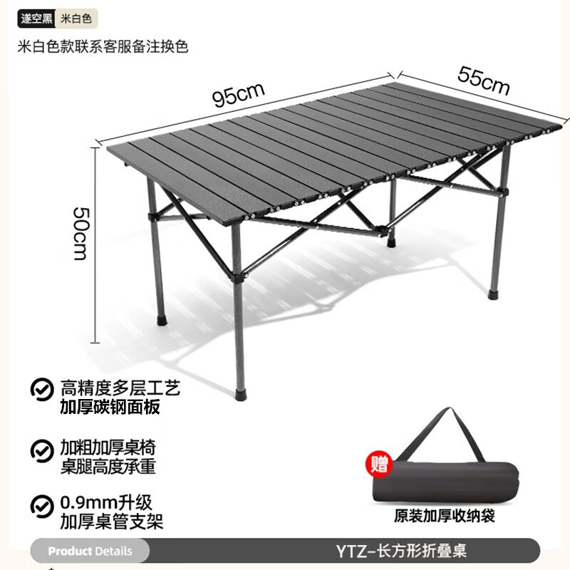 野徒者户外折叠椅露营椅子躺椅便携折叠月亮椅小凳子折叠凳钓鱼凳 曜石黑【大号桌】 出口质量加粗