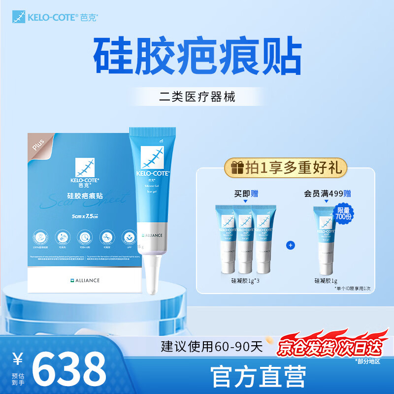 芭克kelocote官方硅凝胶巴克疤克去疤祛疤膏硅酮凝胶治疗修复改善疤痕 15g+祛疤贴(7.5cm)厚【早贴晚敷】