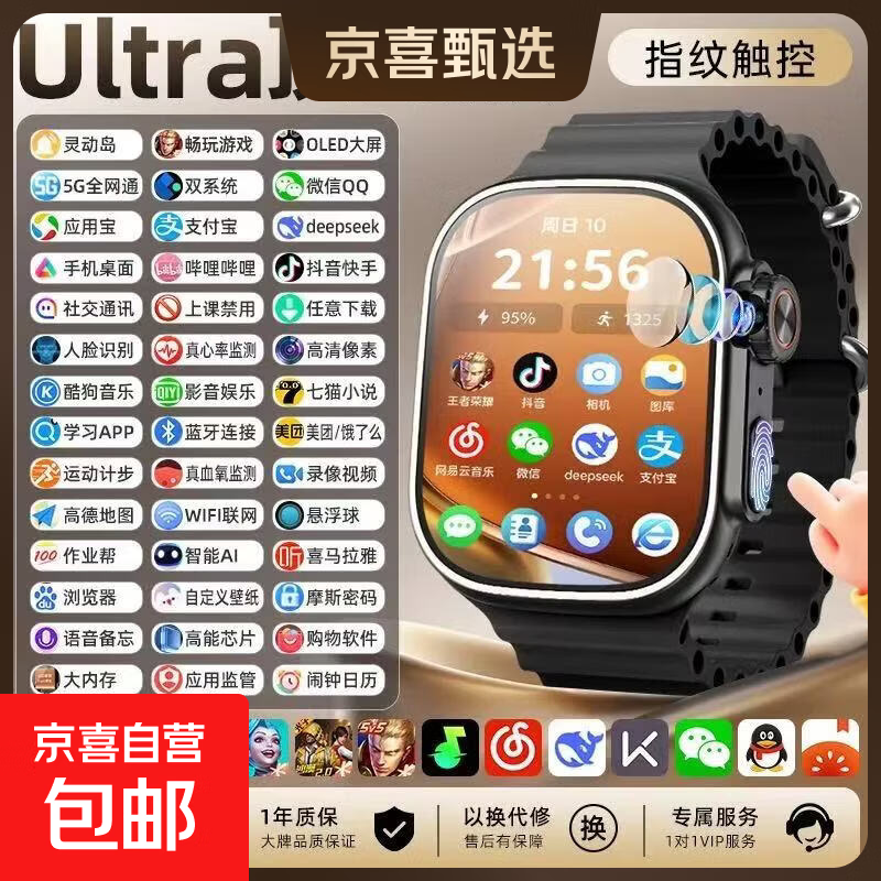 5GWIFI华为适用智能手表可插卡多功能微信电话儿童初高中生专用青少年男士女款成人学生华为机适用 Ultra顶配版黑 指纹触控+灵动岛微信QQ下载