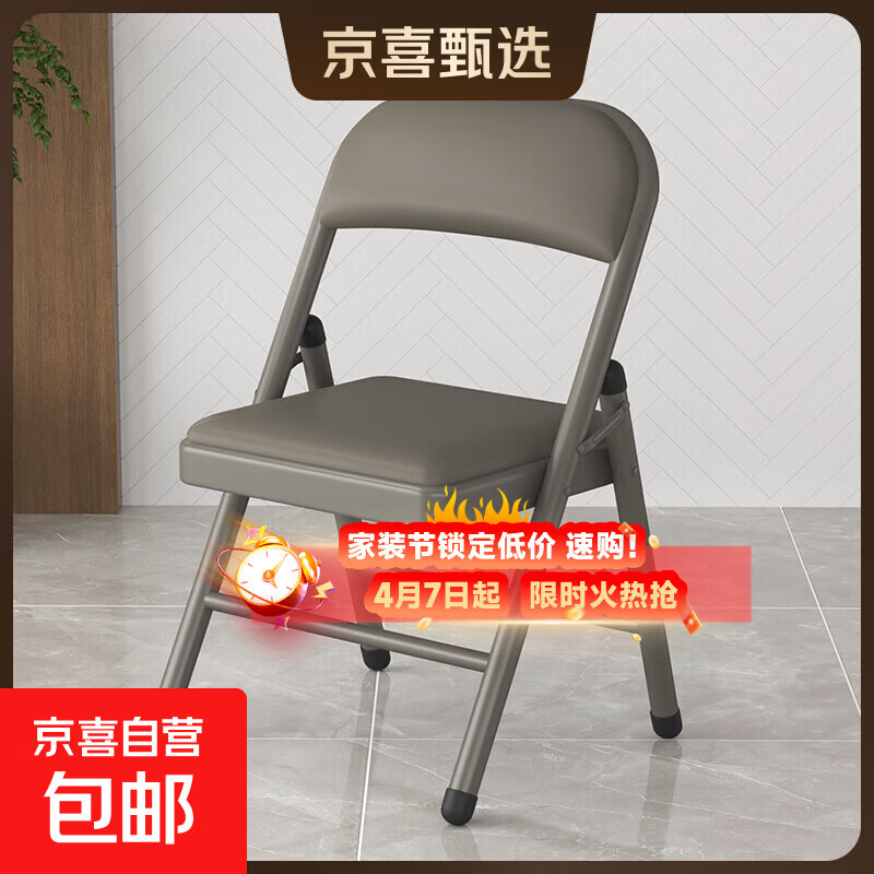 【京喜甄选】电脑椅折叠椅可折叠座椅工学椅凳子便携会议椅座椅 升级加固【灰色PU】