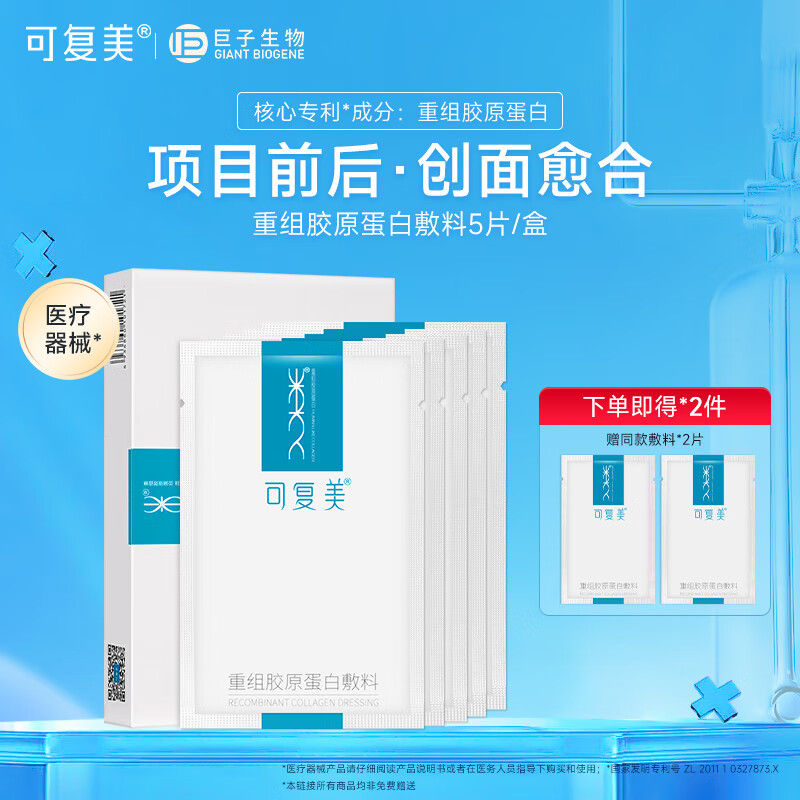 可复美重组胶原蛋白敷料椭圆型 激光子术后创面愈合 敏感肌肤皮炎症痤疮 椭圆敷料5片/盒【赠同款2片】