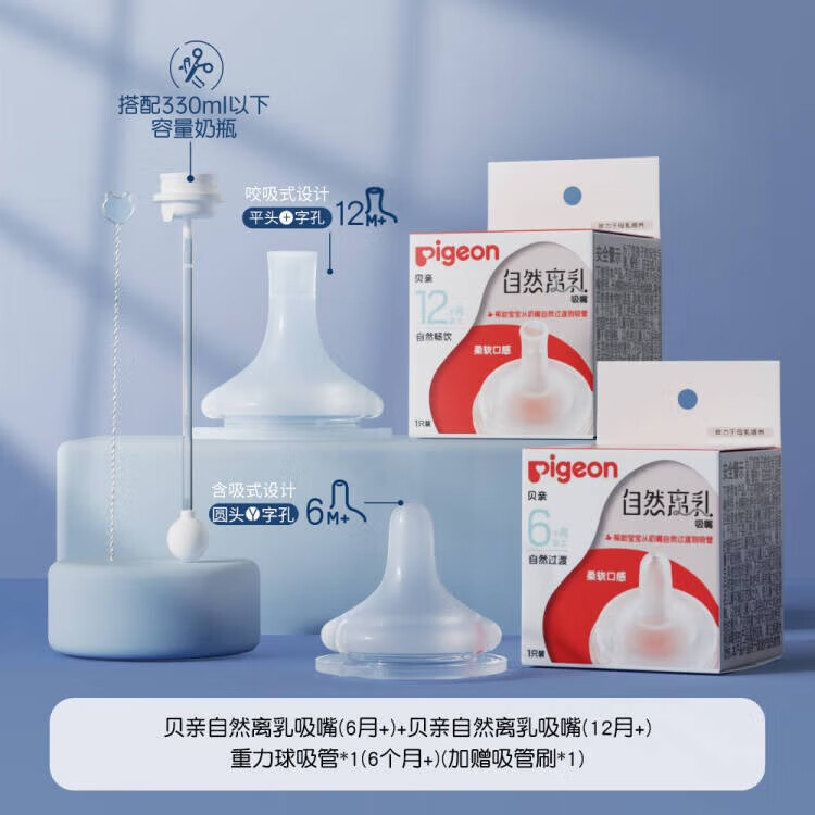 贝亲自然离乳奶嘴宽口径宝宝重力球吸管奶嘴防胀气6个月以上奶嘴配件 自然离乳吸嘴+重力球吸管 适合6个月&12个月+
