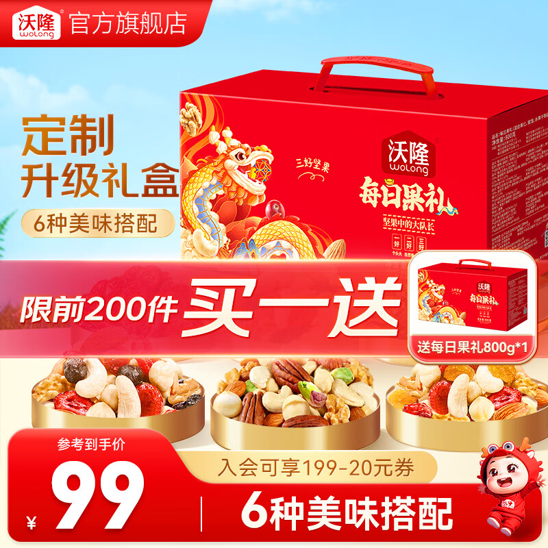 沃隆 每日坚果 坚果炒货休闲零食混合坚果果仁干果核桃腰果零食大礼包 【6种丰富搭配】800g每日果礼