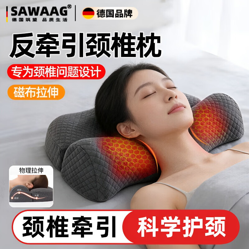飒望【德国】反牵引颈椎枕头护颈枕睡眠颈椎病深度睡眠专用反弓专用枕 【高级灰】【磁震+热敷】放松颈椎 舒适睡眠 A类 单只 【全网热销100W+】颈椎病专用反牵引枕