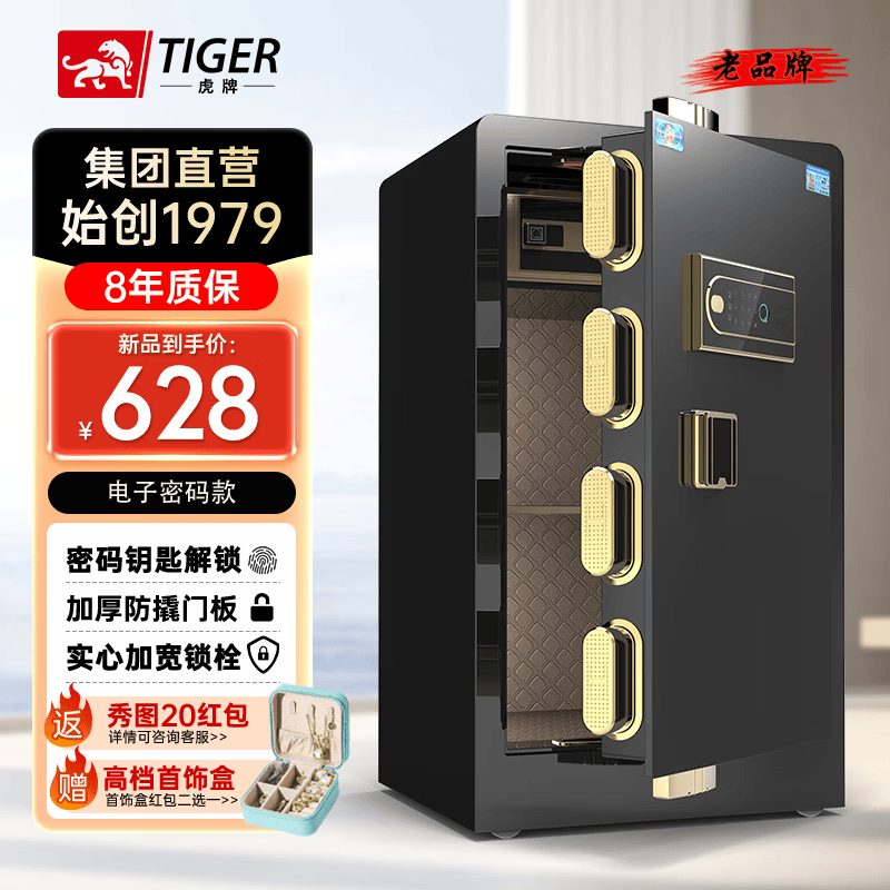 虎牌保险柜家用小型指纹密码WIFI全钢防盗可入墙办公大型保险箱新款保管箱 80cm超值系列-品牌回馈 密码款(钥匙/密码解锁)