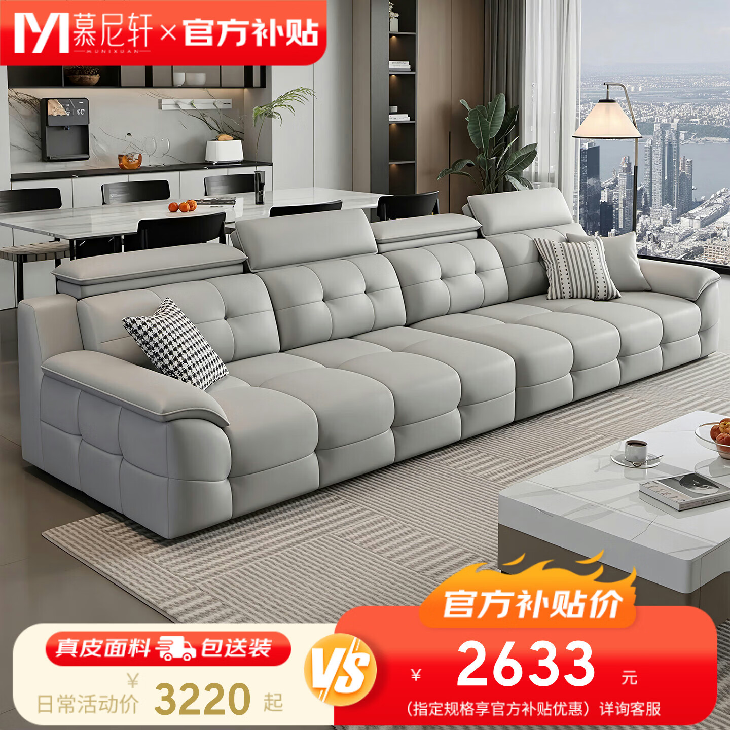 慕尼轩高靠背劳伦斯真皮沙发客厅意式轻奢别墅直排皮艺沙发2822#