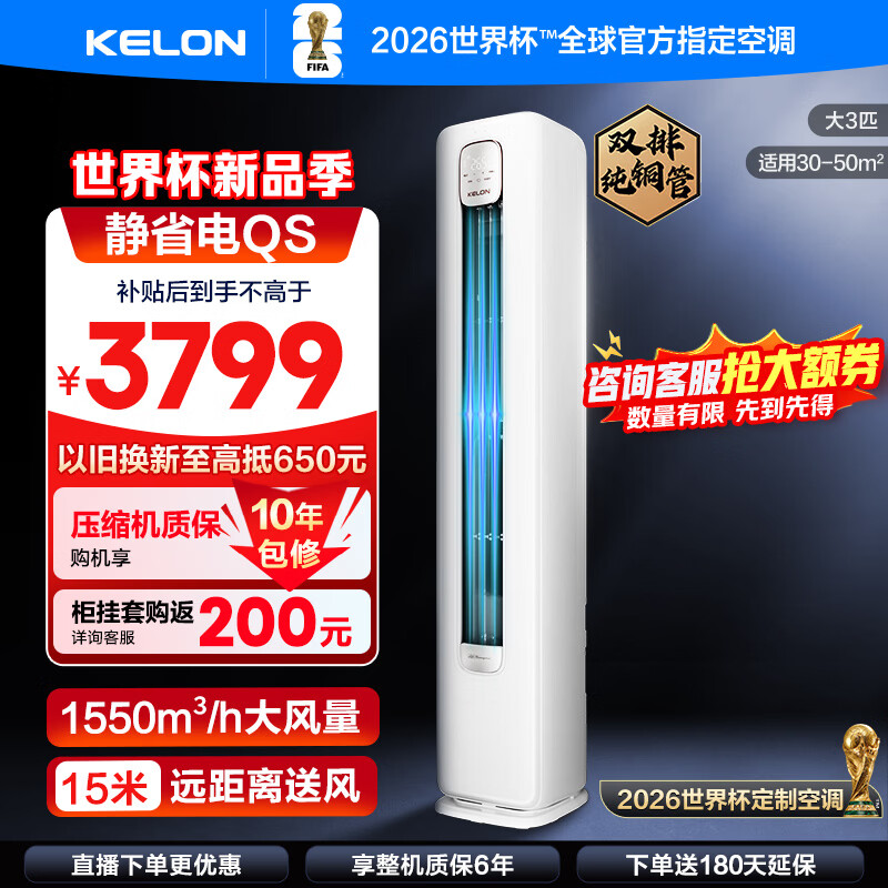 科龙(KELON)空调 询单优惠 静省电大3匹柜机立式新一级 变频家用冷暖 轻音好眠 AI高效省电客厅 大3匹 一级72QSX1B