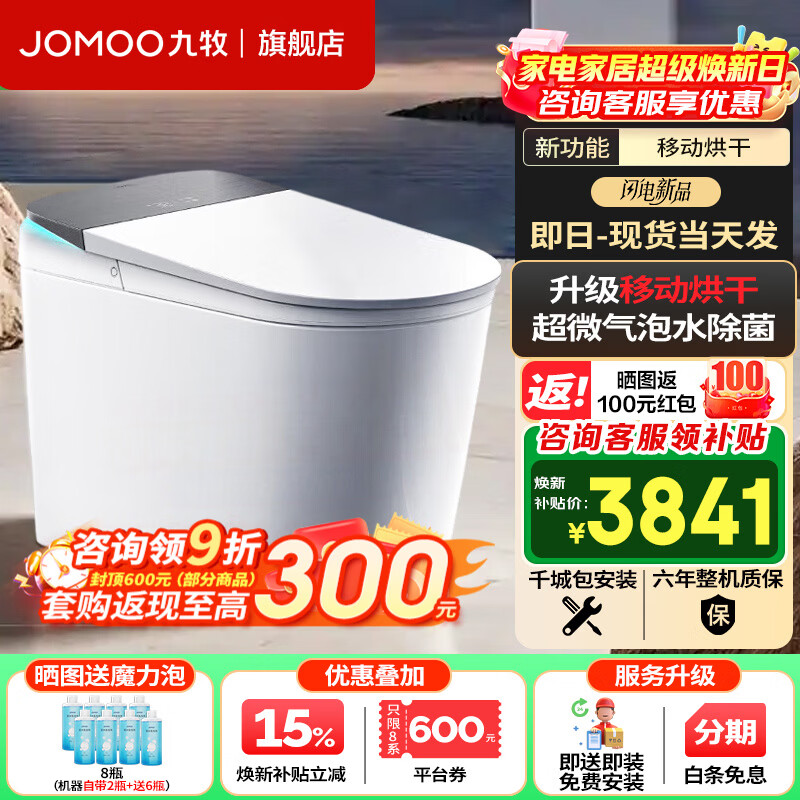 九牧(JOMOO)净界智能马桶S8家用马桶感应翻盖除臭虹吸坐便器无水压限制UV除菌 【净界Pro-ZS800J】超微气泡除菌+移动烘干 400坑距 (390以上选择)