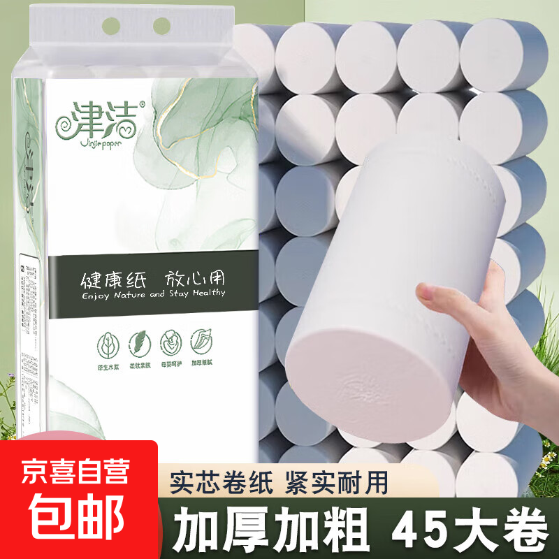 津洁 无芯卷纸【1.5kg/提】大卷卫生纸加厚家用厕纸纸巾卷筒纸 5层 98g/卷*45卷 家用卷纸3提装