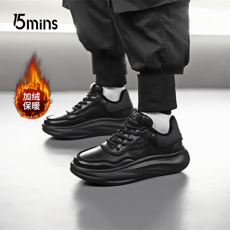 15分钟加绒保暖时尚潮流休闲老爹鞋男士厚底增高运动鞋男
