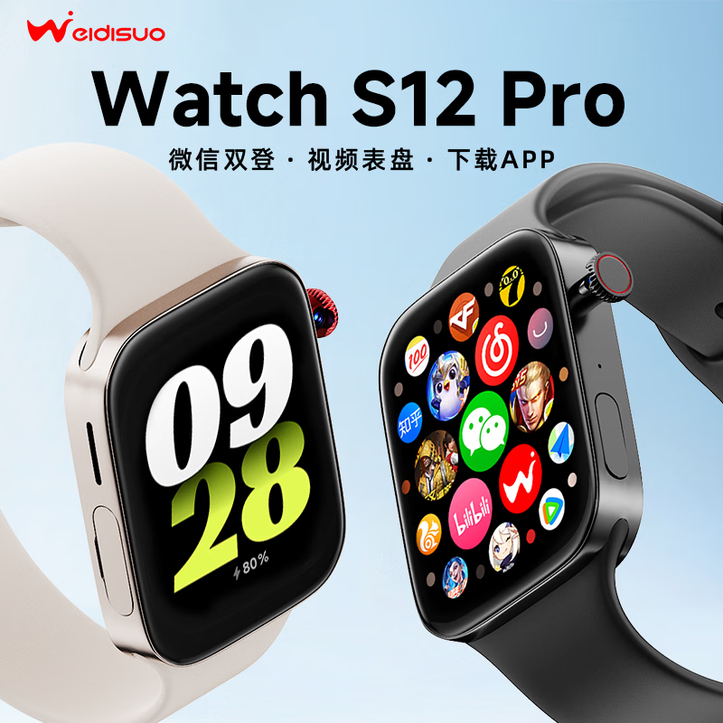 维蒂索智能手表华强北S11ultra顶配版电话插卡搜题手表S10运动男女成人初高中学生蓝牙多功能官方旗舰 S12Pro直边款【黑色】直边专利+APP任意下载