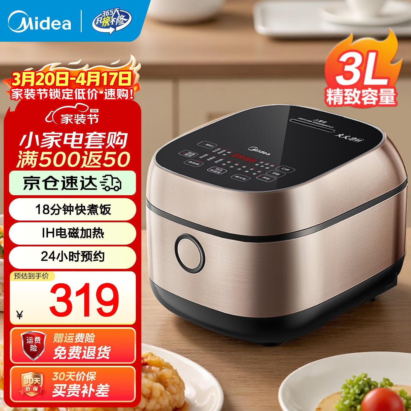 美的(Midea)电饭煲家用智能HI电饭锅2-3-4-5-6人IH电磁加热大火力快煮精钢厚釜内胆一键柴火饭3L IH电饭煲 FB30M5-705T 3L
