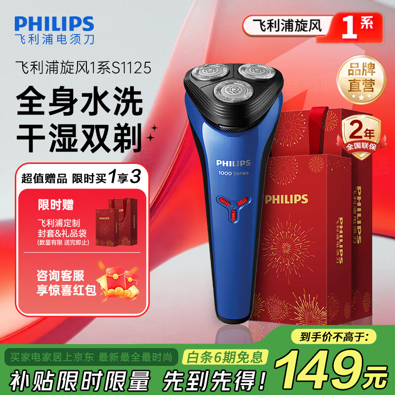 飞利浦(PHILIPS)剃须刀电动剃须刀飞利浦原装进口刮胡刀飞利浦电动剃须刀胡须刀剃胡刀官方旗舰店送男友生日礼物 【经典款式】旋风1系 深蓝星