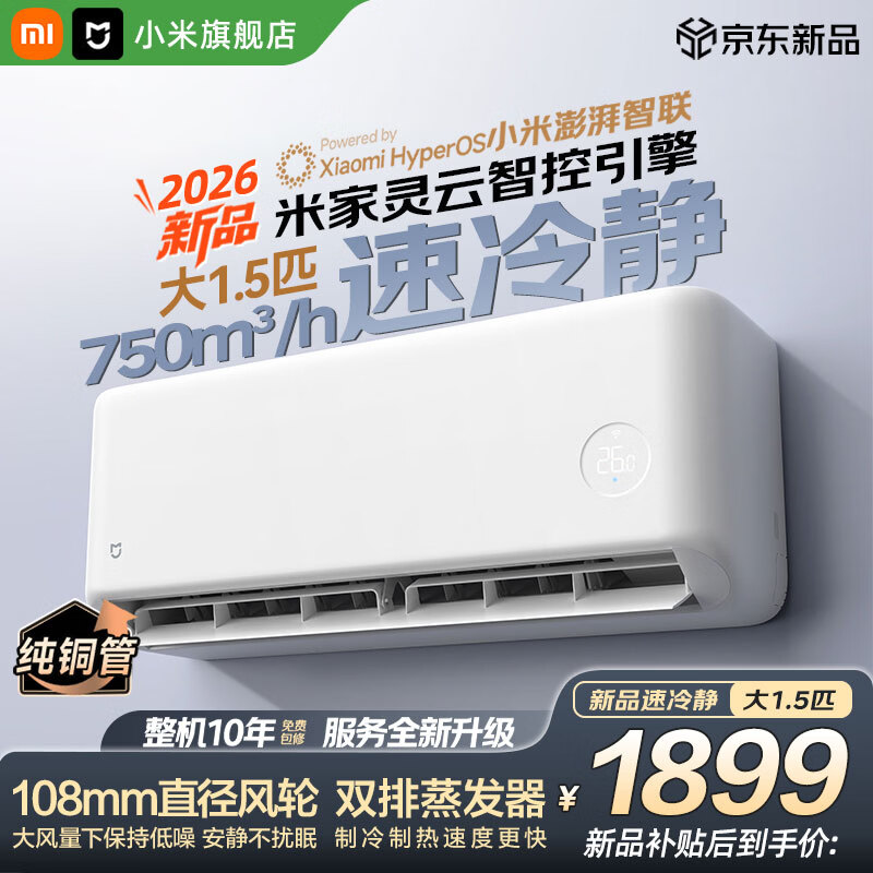 小米(MI)空调米家 1.5匹 巨省电 新一级能效 变频冷暖 家用卧室 壁挂式自清洁舒适空调挂机 26款 大1.5匹 APF5.30 AI节能速冷静双排
