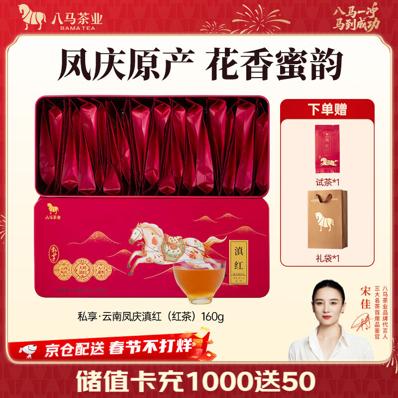 八马茶业 金骏眉/大红袍/肉桂/单枞/铁观音/白茶/茉莉花茶 茶叶自己喝 【云南凤庆滇红】160g