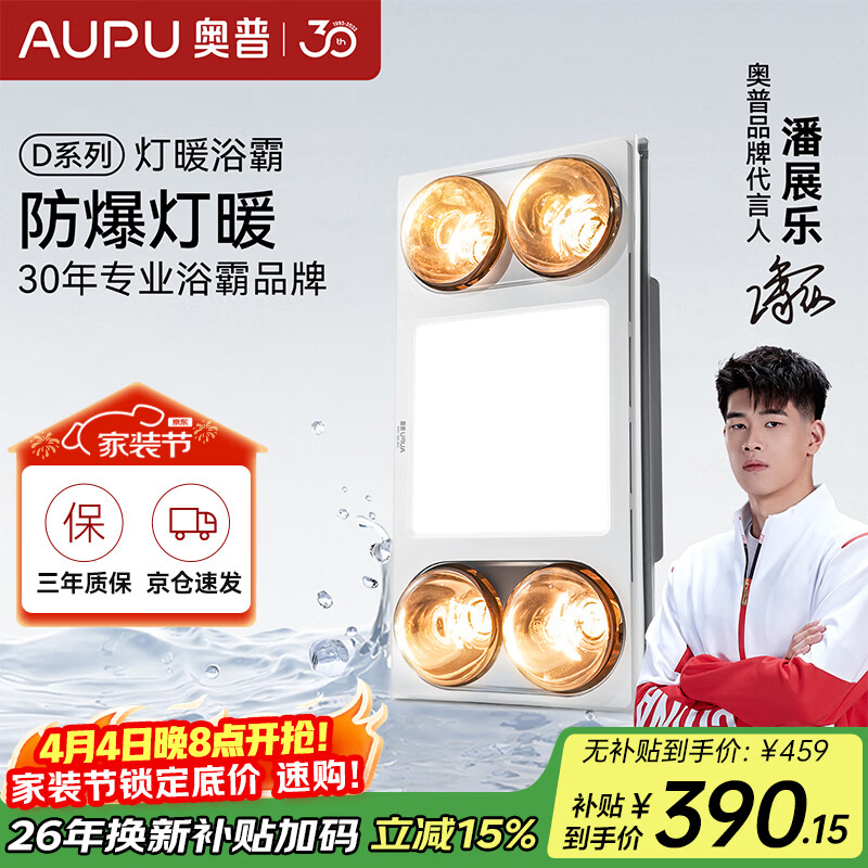 奥普(AUPU)灯暖浴霸悬浮换气浴霸大尺寸设计即开即热 D10B适配集成吊顶