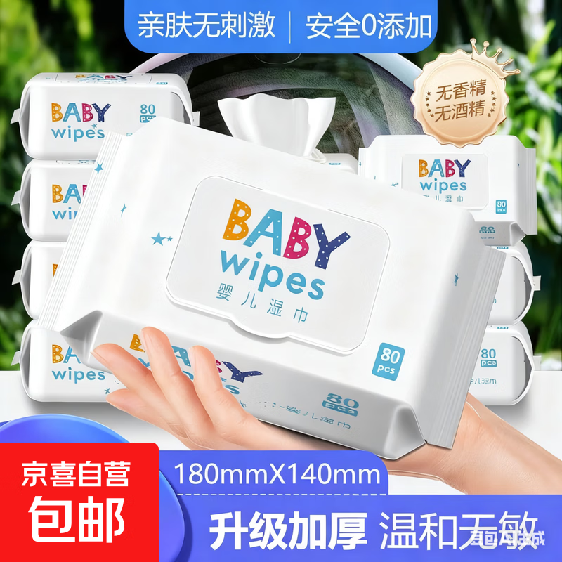湿巾婴儿手口宝宝家庭装大包带盖新生儿加大加厚 80抽*2包(160抽)