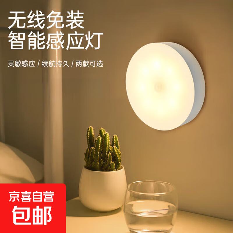 led灯感应灯智能感应灯可充电楼梯灯小夜灯厕所走廊床头灯 磁吸按键款(无感应)